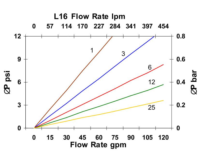 • ISO 3968Pressure Drop vs. Flow Rate