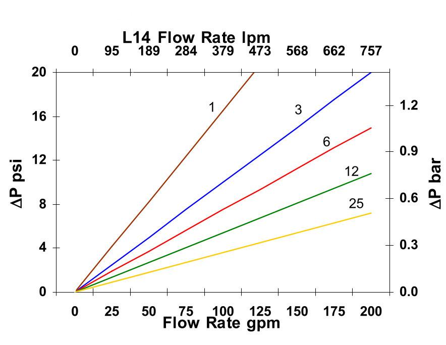 • ISO 3968Pressure Drop vs. Flow Rate