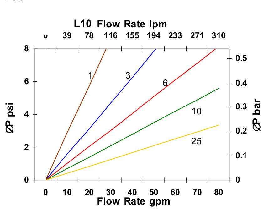 • ISO 3968Pressure Drop vs. Flow Rate